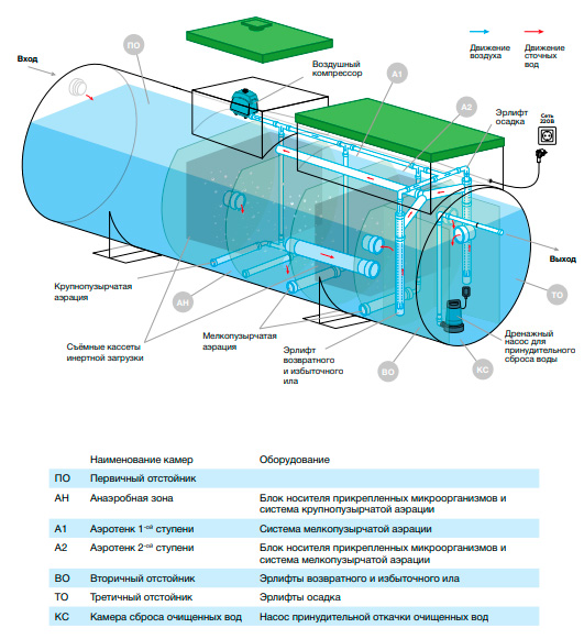 Канализационные очистные сооружения (КОС) полной заводской готовности Евролос Экопром предназначены для глубокой биологической очистки хозяйственно-бытовых и схожих по составу производственных сточных вод от небольших посёлков, гостевых домов, гостиниц, кафе и ресторанов, заправочных станций (АЗС) и прочих коммерческих объектов. Расчетный срок эксплуатации емкостных сооружений составляет не менее 50 лет. В основу технологического процесса очистки положен биологический метод удаления загрязняющих веществ, в том числе соединений азота, с использованием прикрепленной на инертном носителе микрофлоры. Линейка моделей охватывает диапазон производительностей от 8 до 40 м3 в сутки или от 40 до 200 жителей