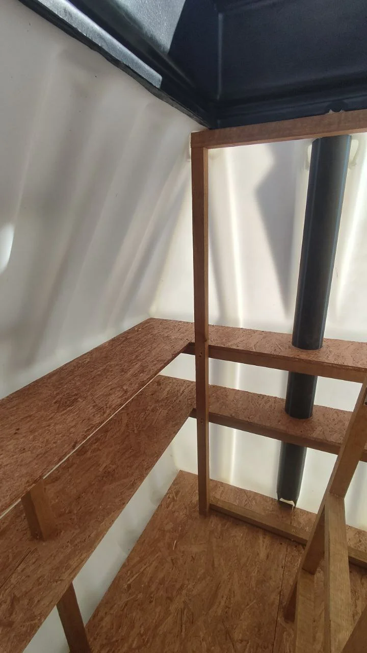 ДхШхВ см: 210х180х200 Два ряда полок, лестница, пол. Лампочка, термометр. Материал: дерево обработанное био-защитным составом.