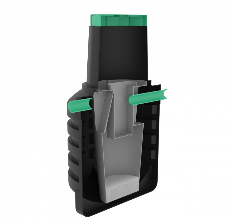 Все сточные воды, идущие от раковин, унитазов, посудомоечной и стиральной машин, направляются в первую секцию септика. В ней происходит отстаивание жидкости с выпадением на дно твердых частиц. Одновременно, на поверхности жидкости образуется пленка жира. Когда уровень жидкости достигает определенного уровня, она переливается через патрубок во вторую камеру. Патрубок устроен так, чтобы осадки и жировая пленка не перетекали в следующую камеру.